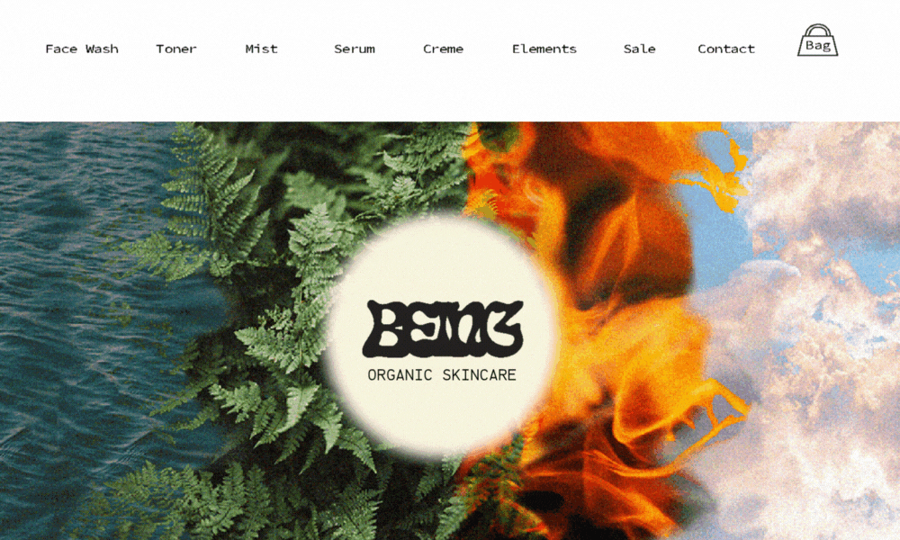 Shop site is simple with most color coming from the photographic elemental motif created to merge all four elements into one image. Creating unity with the products/brand while providing beautiful imagery builds loyalty and trust.